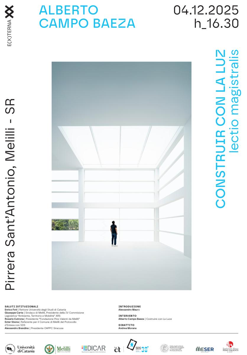 Giovedì 4 Dicembre 2025, a partire dalle 16:30, all’interno della Pirrera Sant’Antonio, presso le cave di Melilli (SR), si terrà una lectio magistralis dell’architetto spagnolo Alberto Campo Baeza.