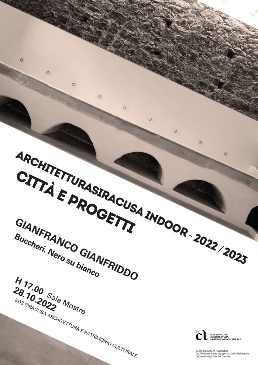 ARCHITETTURASIRACUSA INDOOR - 2022 / 2023 | CITTÀ E PROGETTi GIANFRANCO GIANFRIDDO | Buccheri. Nero su bianco Venerdì 28 ottobre 2022, ore 17.00 Sala Mostre, SDS Siracusa Architettura e Patrimonio Culturale Condividi Facebook Twitter Whatsapp Telegram Email