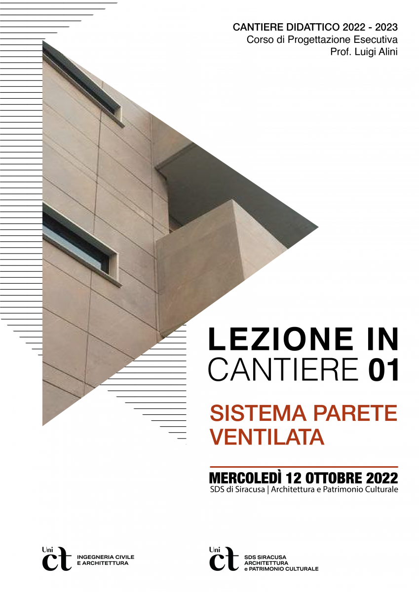 CANTIERE DIDATTICO SPERIMENTALE 2022-23 | SISTEMA PARETE VENTILATA LEZIONE IN CANTIERE 01 | Sistema Parete Ventilata Mercoledì 12 ottobre 2022, SDS di Siracusa in Architettura e Patrimonio. Condividi Facebook Twitter Whatsapp Telegram Email
