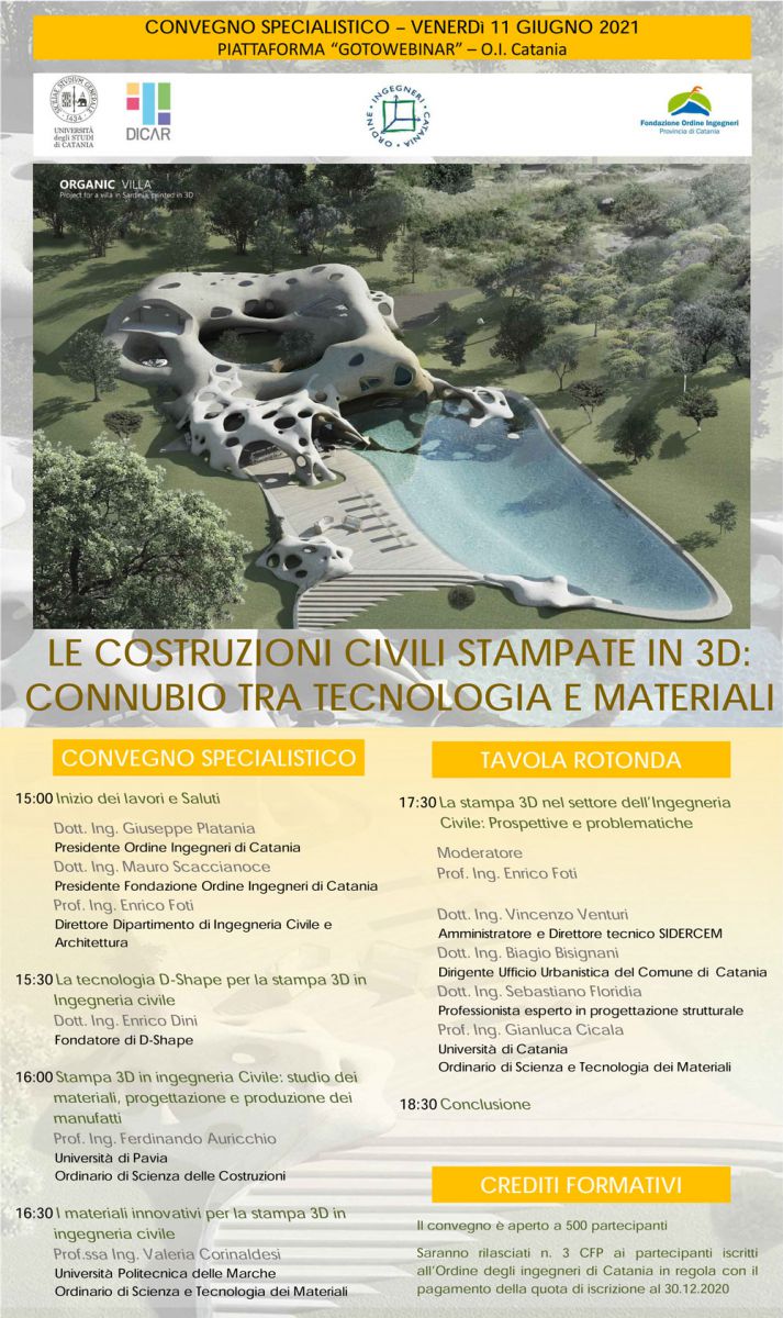 LE COSTRUZIONI CIVILI STAMPATE IN 3D: CONNUBIO TRA TECNOLOGIA E MATERIALI LE COSTRUZIONI CIVILI STAMPATE IN 3D: CONNUBIO TRA TECNOLOGIA E MATERIALI Convegno specialistico su Piattaforma “Gotowebinar” – O.I. Catania Venerdì 11 Giugno 2021. Documenti utili Scarica la locandina Condividi Facebook Twitter Whatsapp Telegram Email