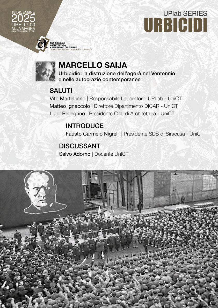Il quinto appuntamento del ciclo Urbicidi ospiterà Marcello Saija, ordinario di Storia delle Istituzioni politiche dell'Università di Palermo.