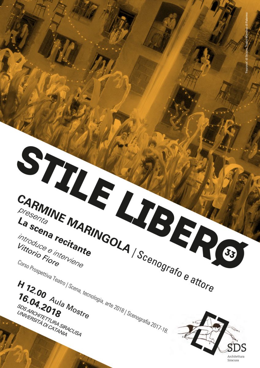 STILE LIBERO#33 STILE LIBERO#33 CARMINE MARINGOLA presenta La scena recitante Lunedì 16 aprile 2018 dalle ore 12.00 presso la Sala Mostre della SDS Architettura di Siracusa. Introduce e interviene Vittorio Fiore Condividi Facebook Twitter Whatsapp Telegram Email