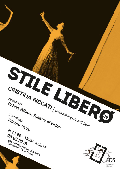 STILE LIBERO#39 STILE LIBERO#39 CRISTINA RICCATI presenta Robert Wilson: Theater of vision Venerdì 03 maggio 2019 dalle ore 11.00 presso l'Aula M della SDS Architettura di Siracusa. Introduce Vittorio Fiore Condividi Facebook Twitter Whatsapp Telegram Email