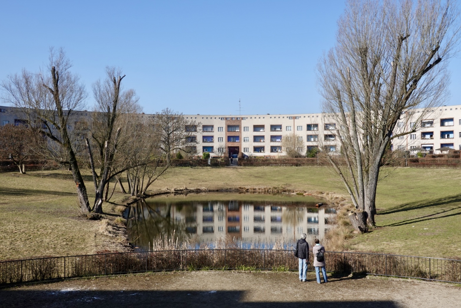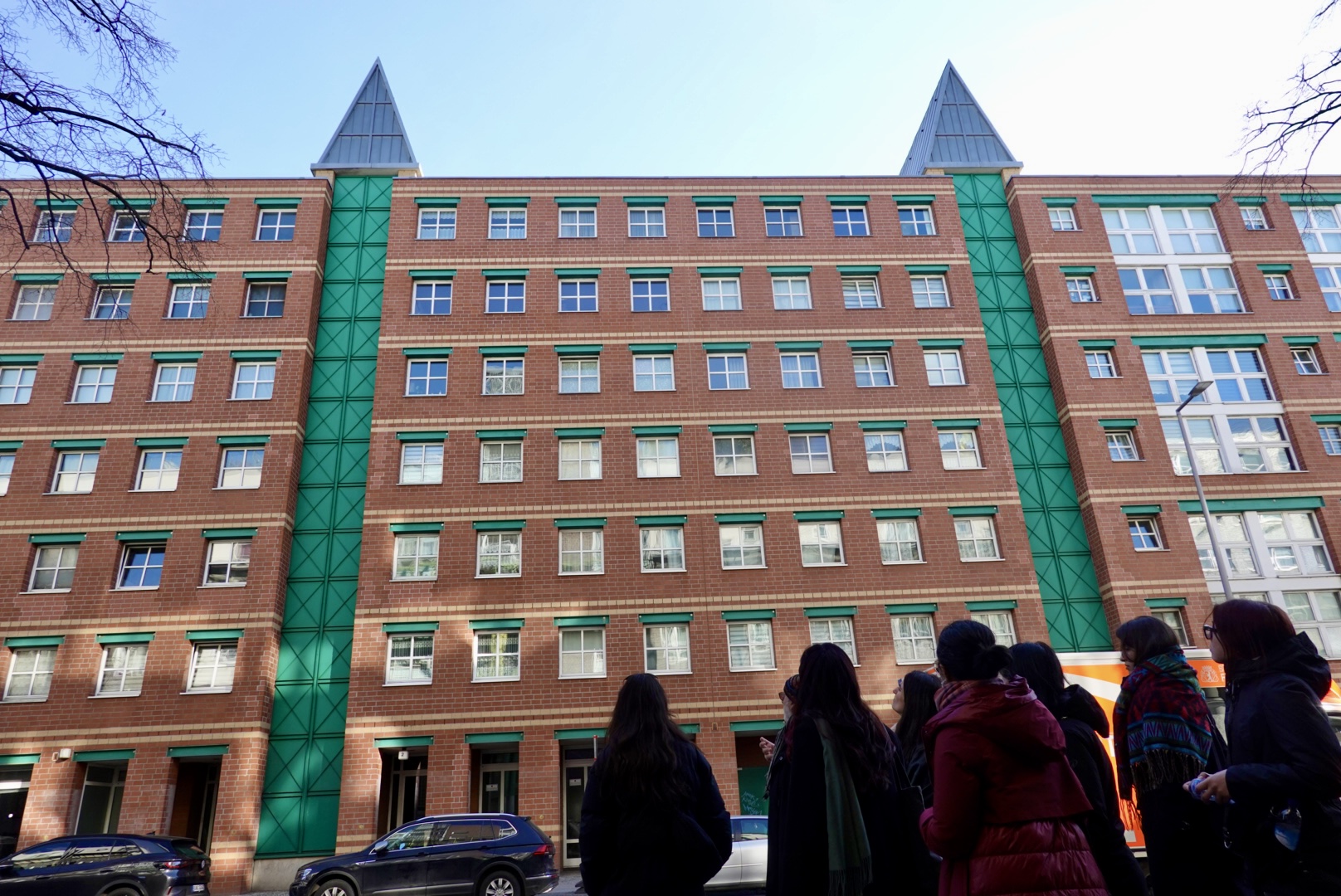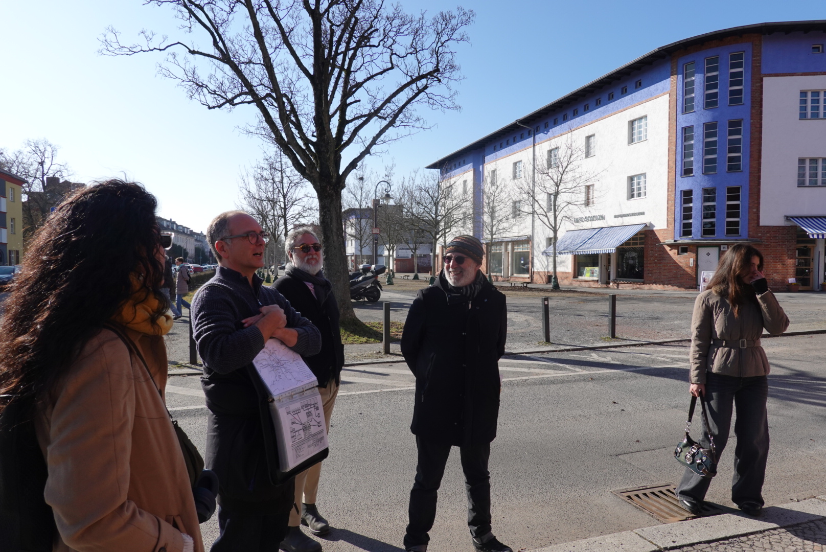 Durante la visita alla Hufeisensiedlung, celebre quartiere residenziale progettato dall’architetto Bruno Taut e oggi patrimonio mondiale UNESCO, gli studenti sono stati accompagnati dallo studioso Ben Buschfeld, che ha guidato un approfondimento sul progetto e sul ruolo delle avanguardie dell’architettura moderna nella costruzione dell’edilizia sociale berlinese.