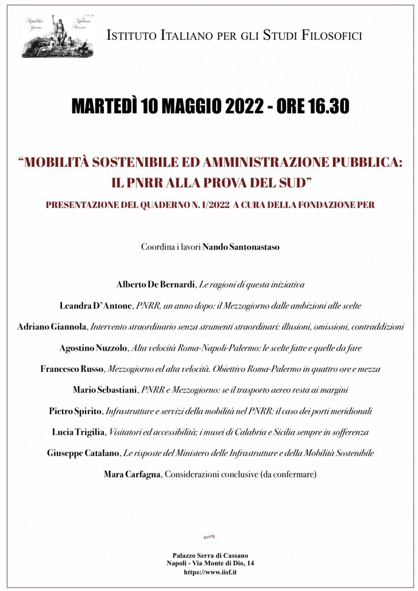 MOBILITÀ SOSTENIBILE ED AMMINISTRAZIONE PUBBLICA: IL PNRR ALLA PROVA DEL SUD Allegati Scarica la locandina Data di pubblicazione: 05/05/2022 Condividi Facebook Twitter Whatsapp Telegram Email